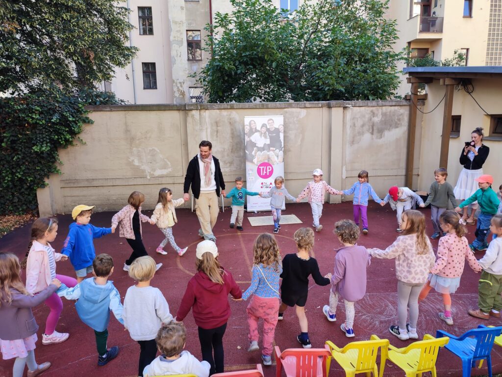 v úterý 9. 9. 2025 navštívili naší školku Nad Štolou tanečníci Tom a Sofie z TAPácké rodiny. Děti si vyzkoušely pár základních stepařských i baletních kroků. Společně si zatančili a vyzkoušeli své pohybové schopnosti, rytmus a hlavně radost z pohybu.